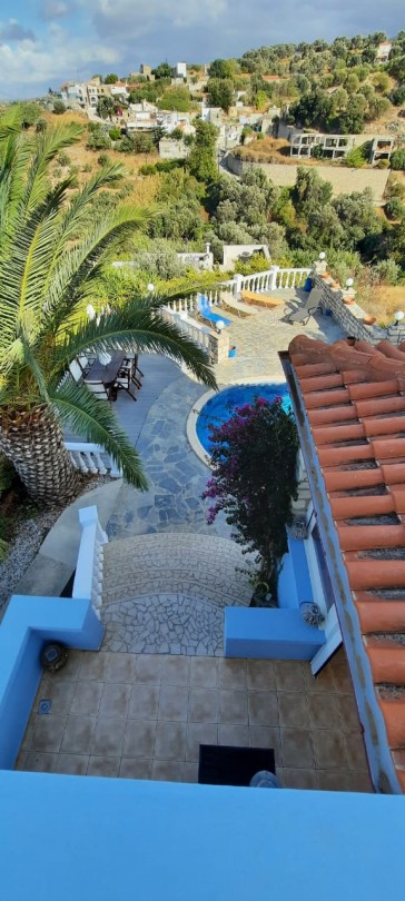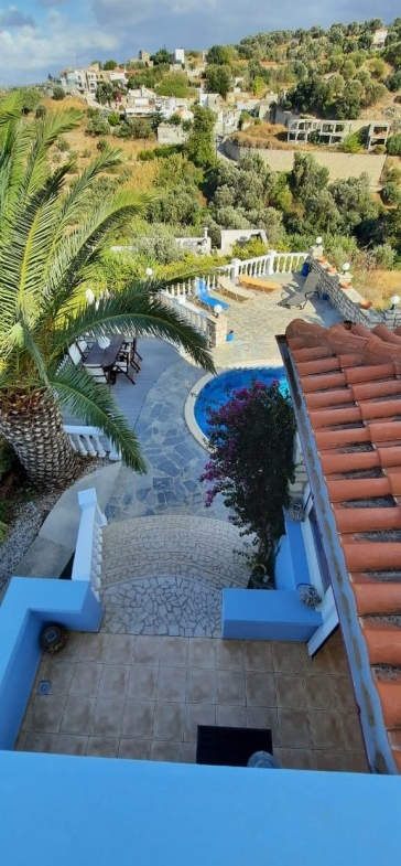 Nestled on the hillside in Agia Triada and set on a manageable but spacious 748 m² plot. The villa comprises 3 large double bedrooms, 2 bathrooms, a lovely open-plan living room and a kitchen-dining area with 2 sets of wheelchair-friendly double doors providing access to the large terrace and fantastic sea views.