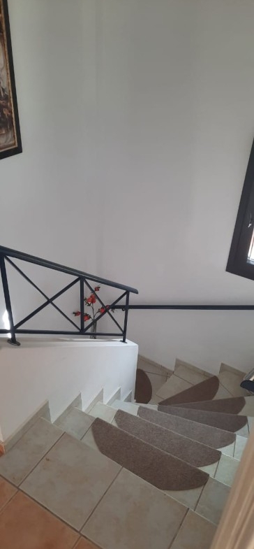 Access to the upper level is from the stairway in the entrance hall. Upstairs, you will find two large double bedrooms and a bathroom. The bedrooms are very spacious with built-in wardrobes and air conditioning. Balcony doors from the bedrooms provide direct access to the 16 balcony with panoramic sea and mountain views, an ideal place to peacefully enjoy the scenery and even sunbathe.